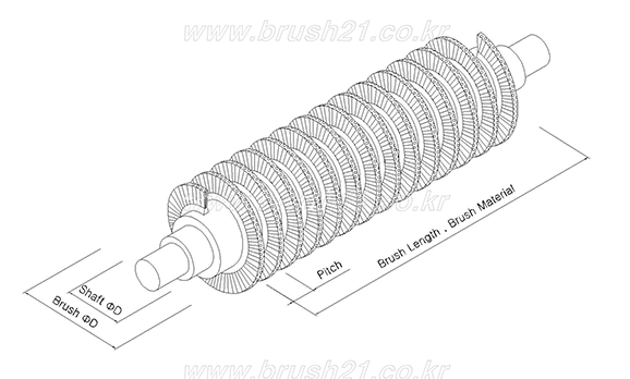 Channel Strip Brush 를 Shaft 또는 Pipe에 외부 코일이나 내부 코일 형태로 감는 방법으로균일하고 고밀도의 제품 생산이 가능한 제품입니다.